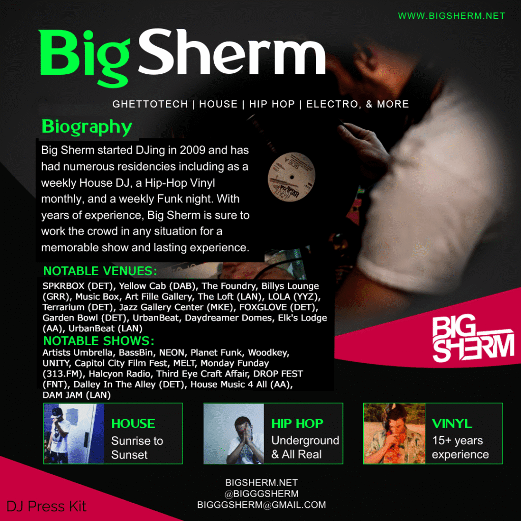 VENUES: Michigan: SPKRBOX (DET), Music Box (Jackson), Foundry (Jackson), Billy’s Lounge (Grand Rapids), DayDreamer Domes (South Haven), Art Fille Gallery, Macs Bar, The Fledge, The Avenue, Stober’s Bar, The Firm, Eden’s Rock, The Loft, Misc Warehouse Parties, Delta Community Center, FOXGLOVE (DET), Garden Bowl (DET)